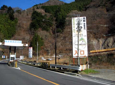 ダウンヒルを終えると湖畔の道を走るのですが、この時は「寒い・眠い・お腹空いた」状態で随分消耗していました。周遊道路を抜けてすぐの「陣屋」に立ち寄ろうと思いつつ、盛りのいい焼きそばのことを思ってパス。一縷の望みを胸にダムサイトそばの駐車場へ向かいますが・・・寒い冬の平日、しかも月曜日に焼きそば屋台が出てるはずはありませんね。奥多摩湖のビジターセンターで食事をとる気分でもなく、食べ物を求めて青梅街道を下ります。